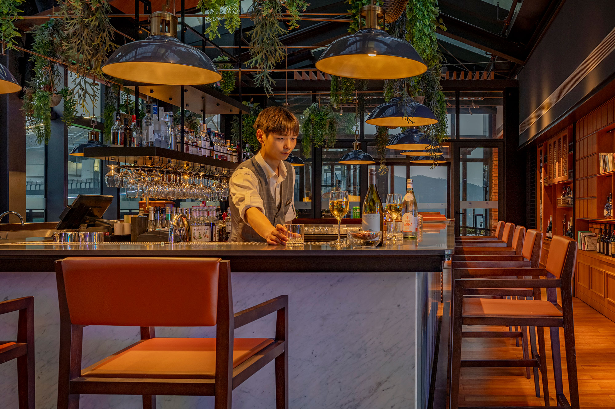 ‘180° Rooftop Bar’ is a fabulous destination on the 23rd and Top Floor of Hyatt Regency Hengqin, that enjoys sweeping panoramic views if the surrounding area. This new Dynamic Outlet has a large central bar with seating, centred under a spectacular skylight. This combines with an intimate lounge seating area that adjoins a DJ and dance floor area. This is a great spot to relax over a drink at lunchtime, or at sunset or as the vibe cranks up with music and entertainment later in the evening. On offer too is a wide range of cocktails, wines, and beers to sip and enjoy in this sky-high environment. The food too is delicious as the bar has a tasty menu of snacks and light meals, along with some mouthwatering barbecued meats.