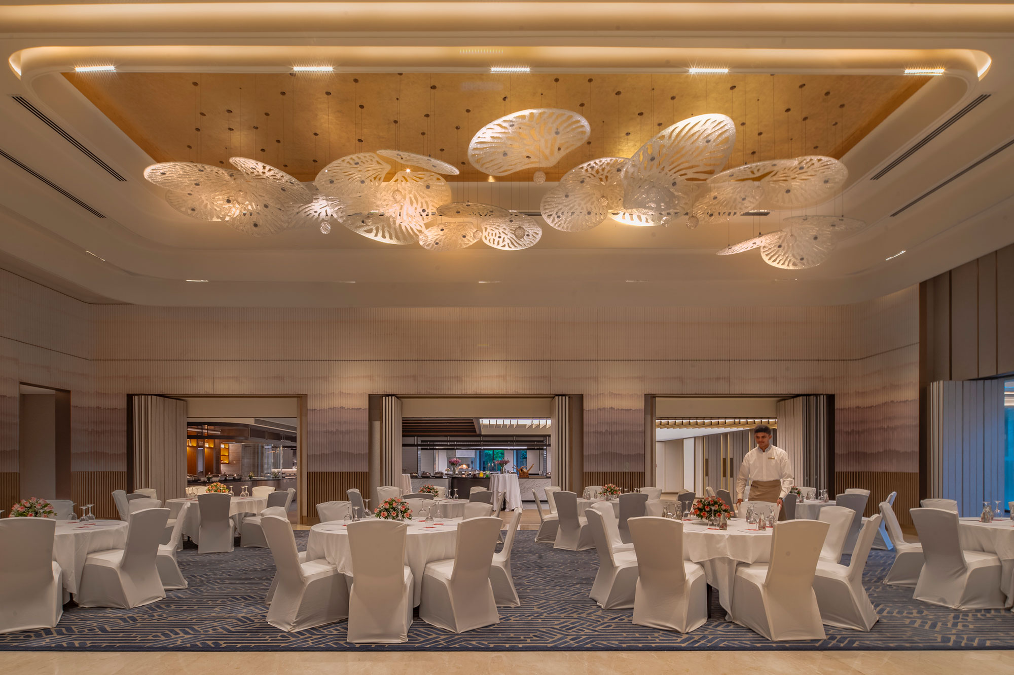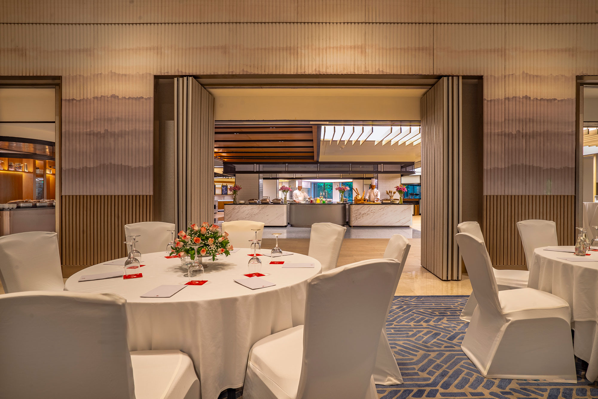 The Regal Room with its stunning new design is the perfect venue for weddings and conferences. This hosts events for up to 700 guests. Not only are the interiors and ambience unique, but this impressive opulent room also opens to a large modern culinary experience that includes multiple staging kitchens with menu offerings from around the world and in addition The Regal Room connects pre-function area that has offers two contemporary well stocked bars.